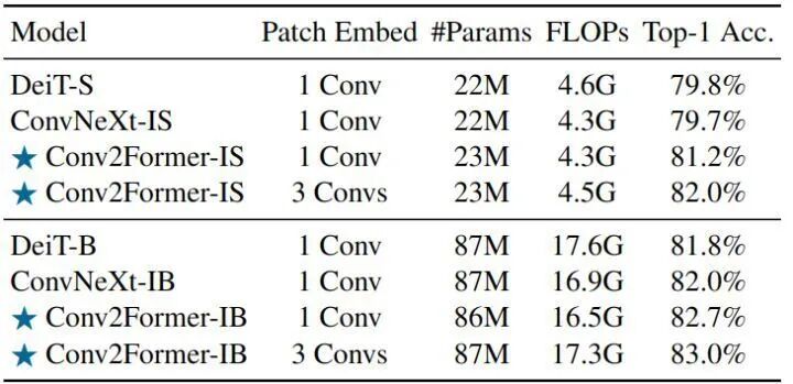 本文提出一种卷积调制模块,利用卷积来建立关系,这比注意力机制在处理高分辨率图像时更高效,称为 Conv2Former。作者在 ImageNet 分类、目标检测和语义分割方面的实验也表明,Conv2Former 比以前基于 CNN 的模型和大多数基于 Transformer 的模型表现得更好。 >>加入极市CV技术交流群,走在计算机视觉的最前沿