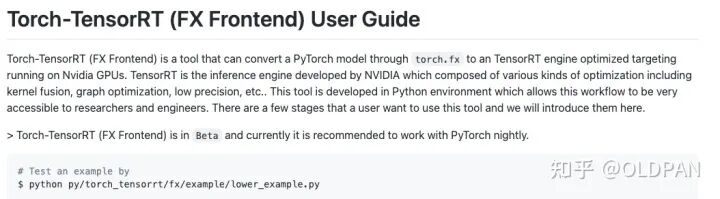 因为和我之前跑通的版本变动较大(毕竟隔了几个月hh),决定先观察观察再写,然后就一直拖啊一直拖。然后拖到了现在,随后也看到了官方的FX2TRT的 User Guide(https://github.com/pytorch/TensorRT/blob/master/docsrc/tutorials/getting_started_with_fx_path.rst) :