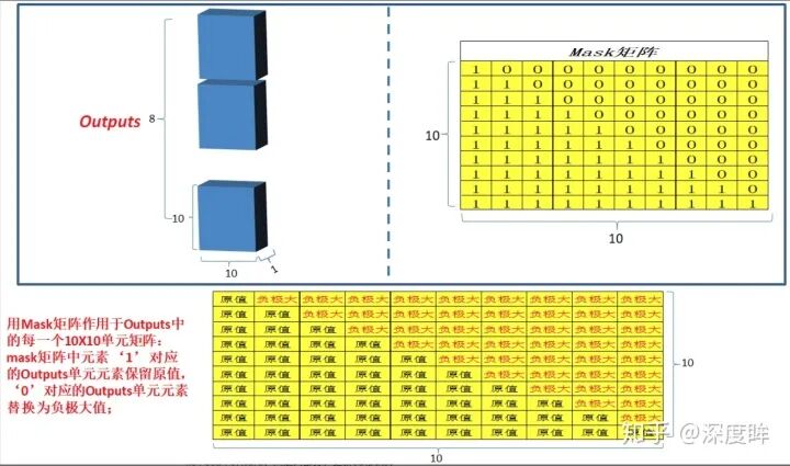 相乘,得到QKV输出,shape为(b,N,M);然后将Q和K进行点乘计算向量相似性;采用softmax转换为概率分布;将概率分布和V进行加权求和即可。其可视化如下: