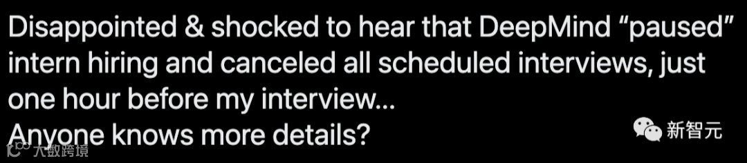 「看到DeepMind『暂停』实习生招聘并取消了所有预定的面试,而且就在我面试前一小时,我感到很失望和震惊。」