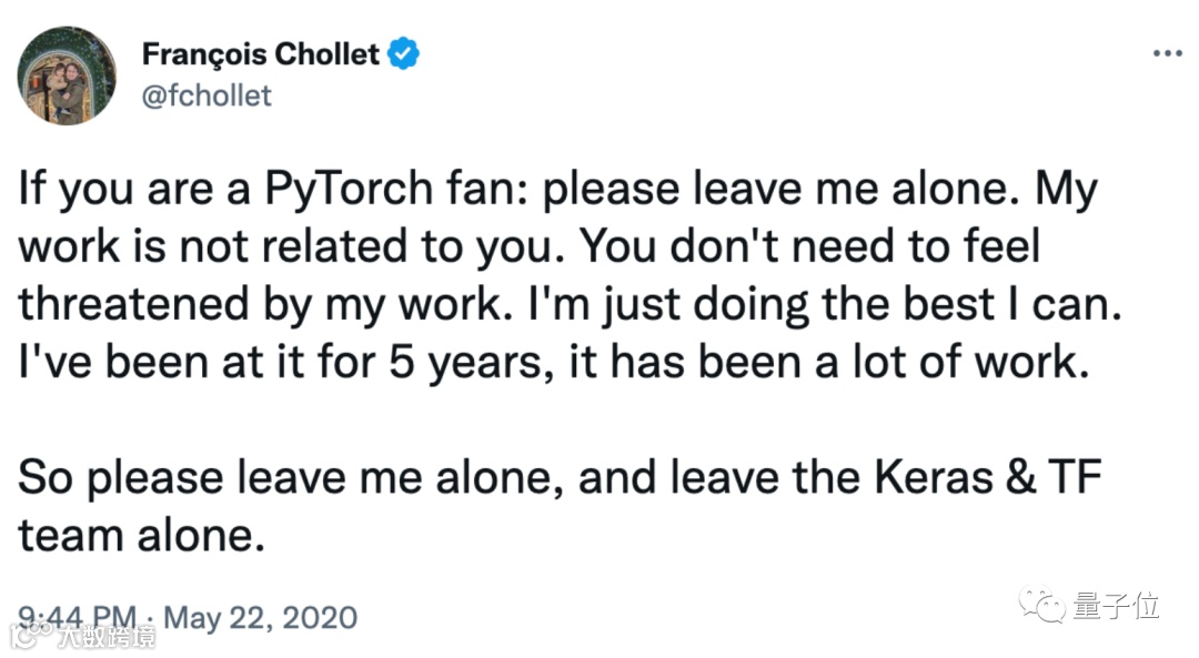 至少在2020年的时候,他的观点依旧如此:“如果你是PyTorch粉丝,我的工作与你无关。”