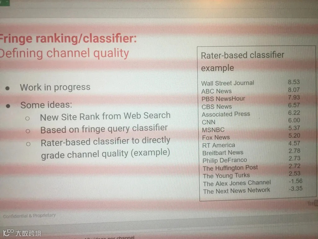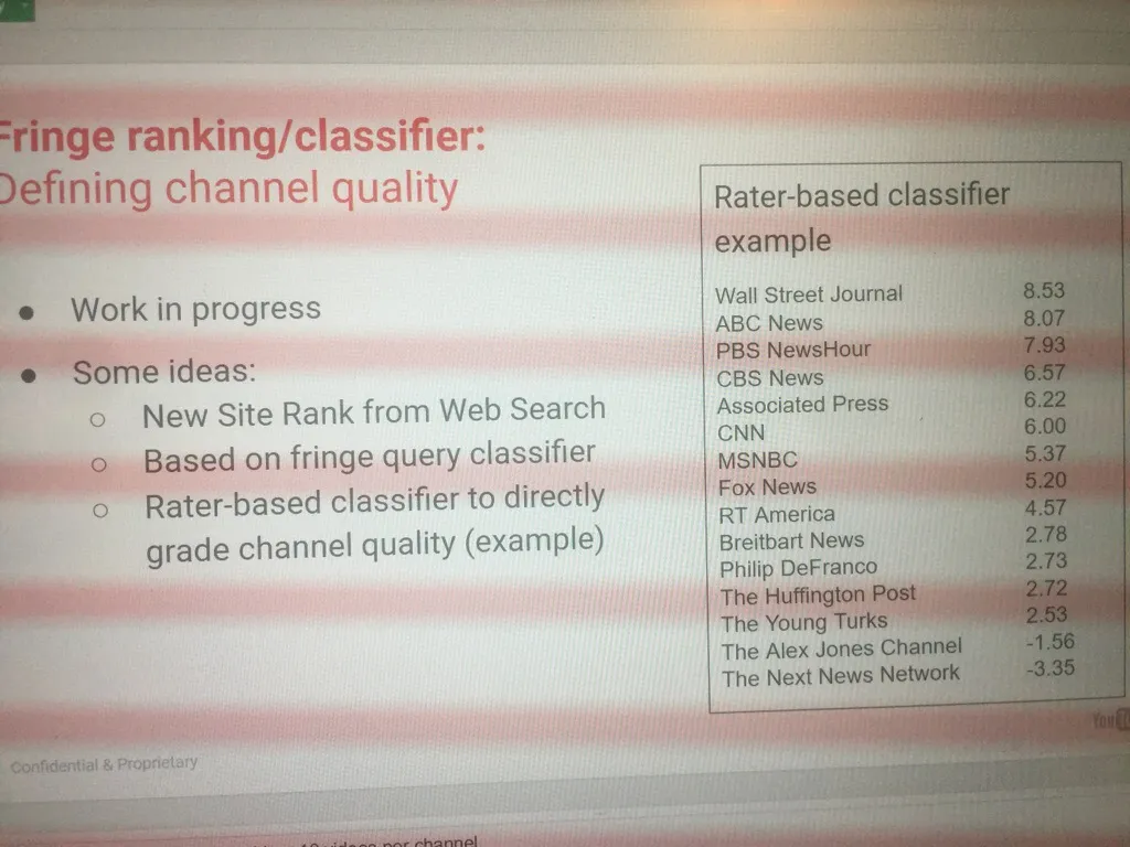 在一份被泄露的题为「边缘排名/分类器: 定义频道质量」的文件中,谷歌将ABC、CBS和CNN评为比福克斯新闻、《今日俄罗斯》和Breitbart更权威的媒体。