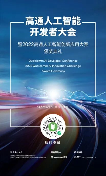2022年12月2日,高通人工智能开发者大会即将在成都金牛区举行。大会将携手产业界各路技术大咖,聚焦探讨人工智能行业产业生态链的升级与挑战。本次活动由高通公司冠名赞助,成都市金牛城市建设投资经营集团有限公司、成都交子现代都市工业发展有限公司、山东极视角科技有限公司联合承办,极市平台,AidLux AIoT应用部署工具作为技术支持合作伙伴。