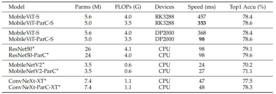 幸运的是,FastParC完全等同于ParC,并且替换不需要任何额外的转换。可以根据平台的要求选择ParC的具体实现形式。由于ParC和Fast ParC拥有最高级别的灵活性,用于训练和推理的实现也可以解耦。