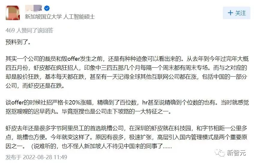 对虾皮社招内幕了解颇深的知友「小星螺」 表示自己早料到虾皮大量毁约的这一天。