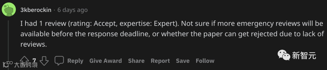 更有网友表示,自己只收到了1个评审结果。而理论上,每篇论文至少会有2位审稿人。