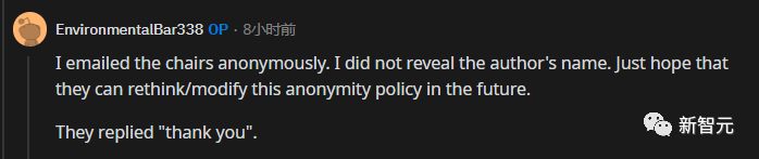 这位审稿人在帖子中表示,自己并没有去联系meta审稿人。而且很显然,自己的身份已经暴露了,无论自己接下来做什么,论文作者都会知道。