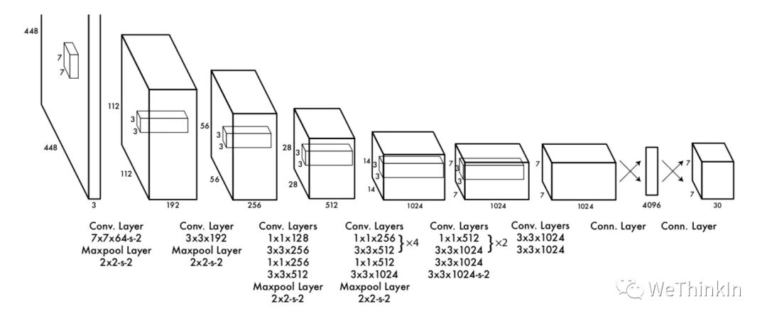 YOLOv1中,图片被划分为 的网格(grid cell),每个网络在Head侧进行独立检测。