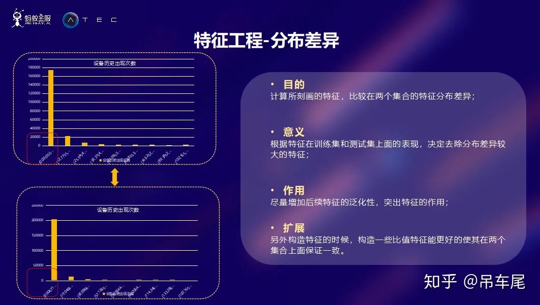如果我们遇到分布不一致且不太重要的特征,我们可以选择直接删去这种特征。该方法在各大比赛中十分常见。例如: 在2018年蚂蚁金服风险大脑-支付风险识别比赛中,亚军团队根据特征在训练集和测试集上的表现,去除分布差异较大的特征,如图9[9]。