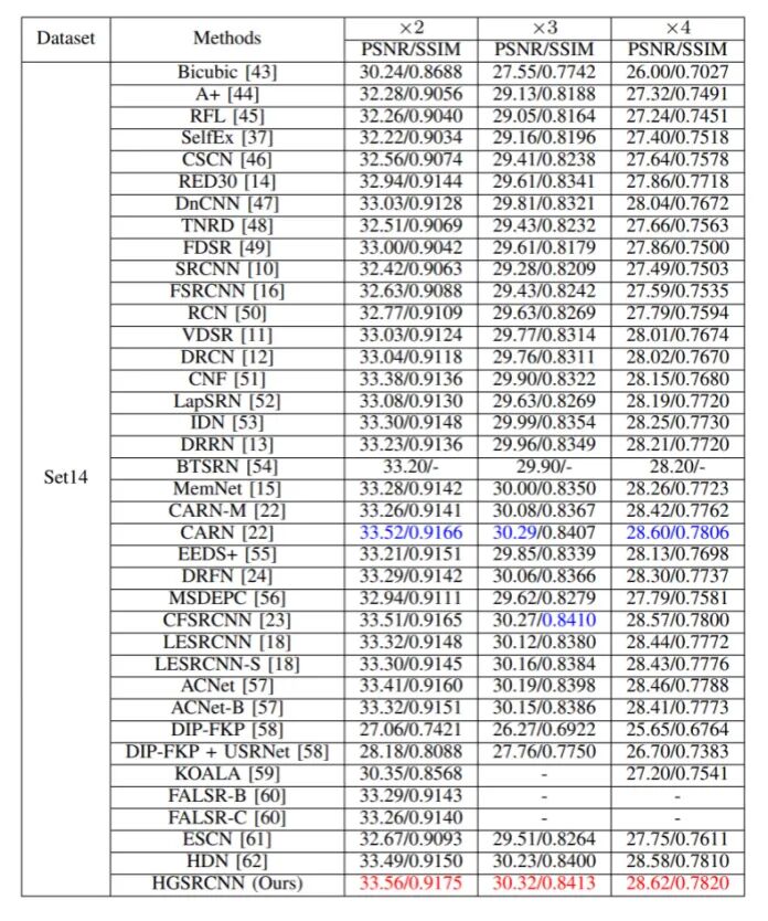 提出的52层的HGSRCNN利用异构结构和提纯块以并行和串行的工作方式来增强不同通道的内部和外部的关联,获得不同类型的丰富的低频结构信息,这是非常适合复杂场景下的图像超分辨任务。 -