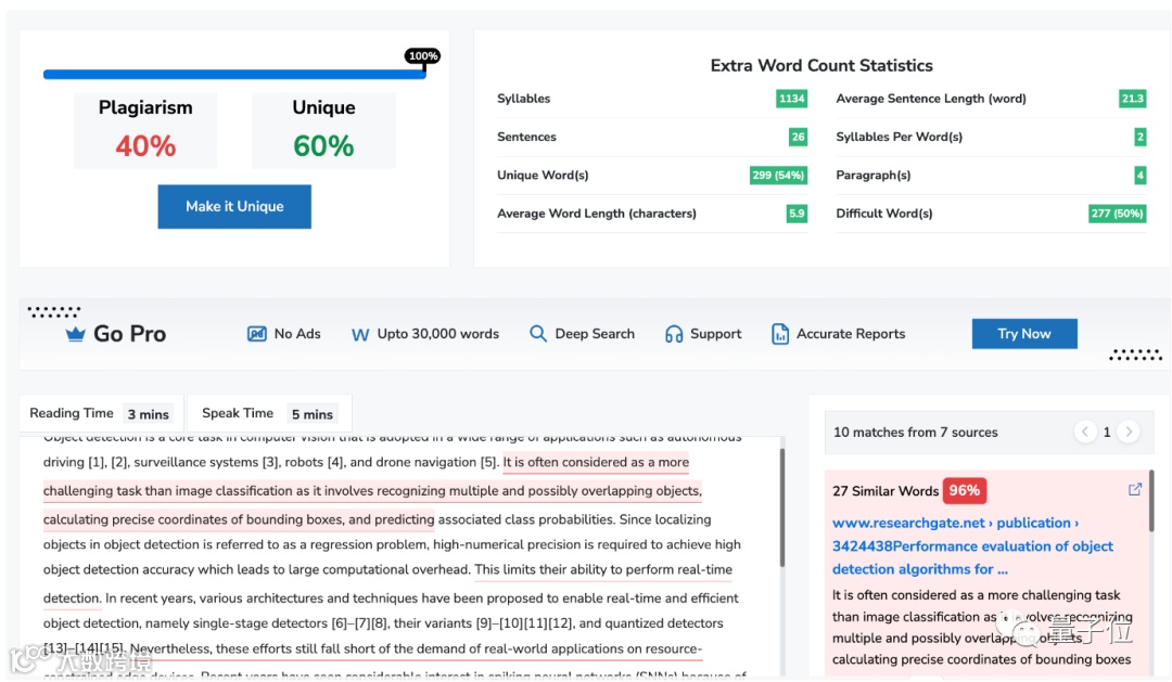 检测软件显示,它有40%的抄袭嫌疑,文中有27处表达与之前研究高度相似。