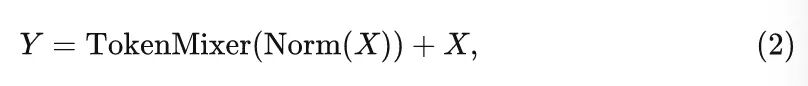式中, 代表输入的特征, 是归一化函数, 代表令牌混合器或者 Channel MLP。