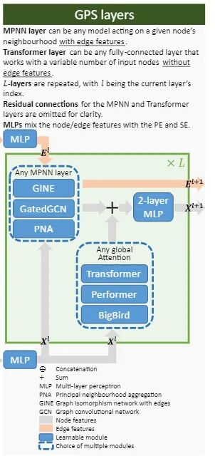 针对layer的设计,该论文采用GPSlayer = a hybrid MPNN+Transformer layer。