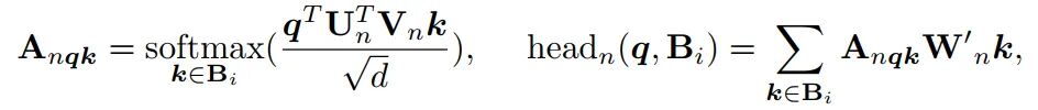 其中,每一个 head 的自注意力由下式计算得到: