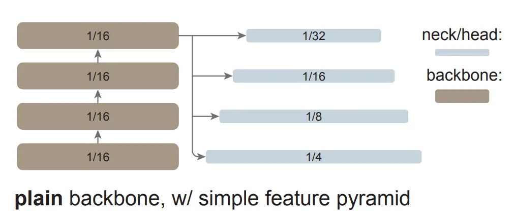 如果主干网络不是分层网络,那么 FPN 动机的基础就会消失,因为主干网络中的所有特征图都具有相同的分辨率。该研究仅使用主干网络中的最后一张特征图,因为它应该具有最强大的特征。