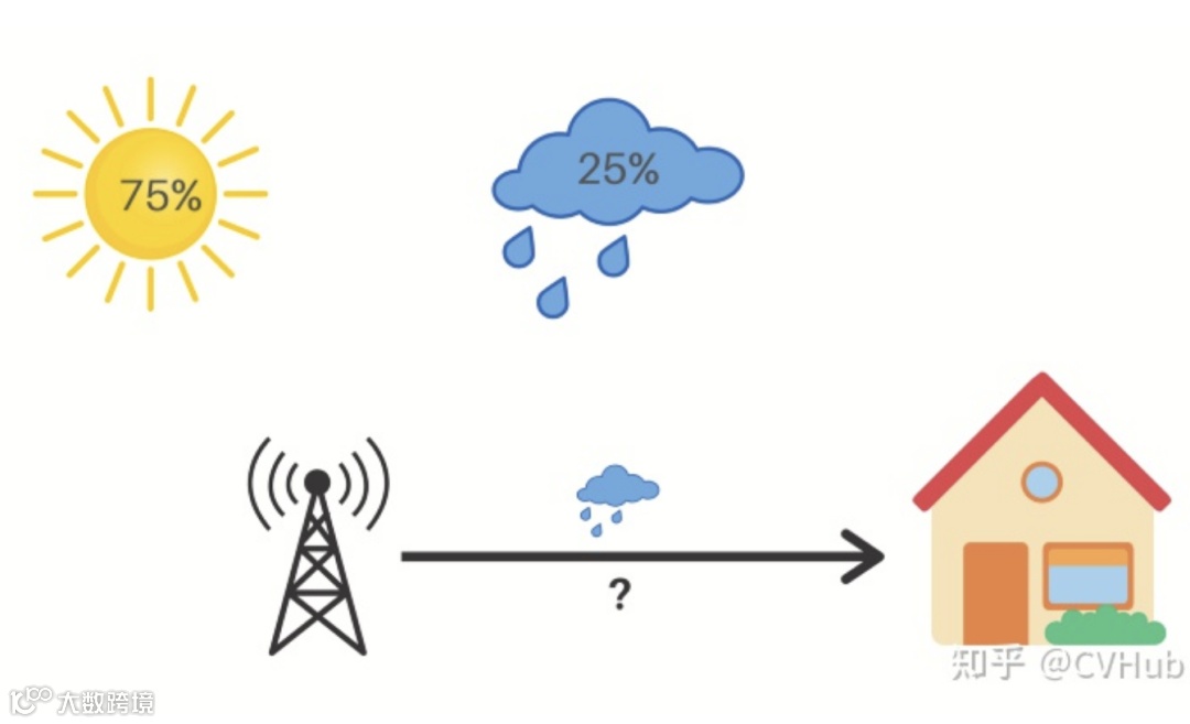 那么,当气象站为您提供第二天的天气时,它们会将您的不确定性降低了8倍。由于每个事件的发生几率为1/8,因此降低因子为8。但如果这些可能性不是等概率的呢?比如,75%的机会是晴天,25%的机会是雨天。