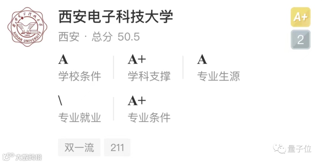 值得一提的是,西安电子科技大学在“第一梯队”中,是唯一一所非985高校。