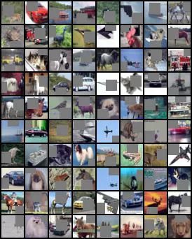 Tensor: Image with n_holes of dimension length x length cut out of it.