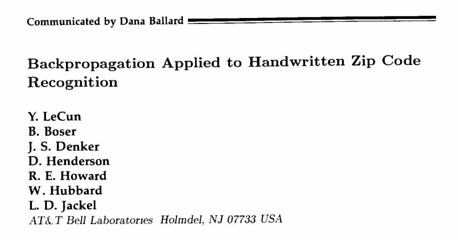 1989 年,Yann Lecun 等人发表了一篇名为「Backpropagation Applied to Handwritten Zip Code Recognition」的论文。在我看来,这篇论文有一定的历史意义,因为据我所知,它是使用反向传播训练的端到端神经网络在现实世界中最早的应用。