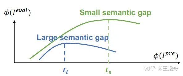 (2)当被迁移域eval-D和预训练域pre-D的语义差距(semantic gap)更大时,我们需要保留更大的intra-class variation来做应对。