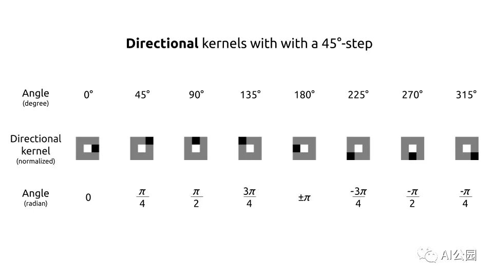 为了细化边缘,可以使用非最大抑制方法。在此之前,我们需要创建45°× 45°方向的kernel。