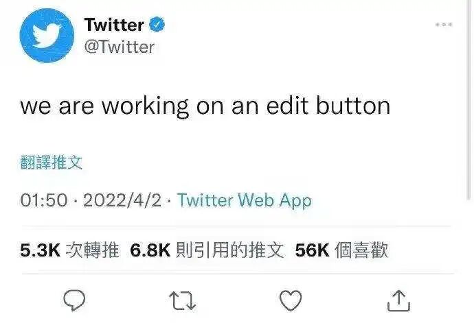 其实,早在3天前,Twitter已经发布了一条关于「编辑按钮」的推文,表示他们正在努力开发「编辑按钮」。
