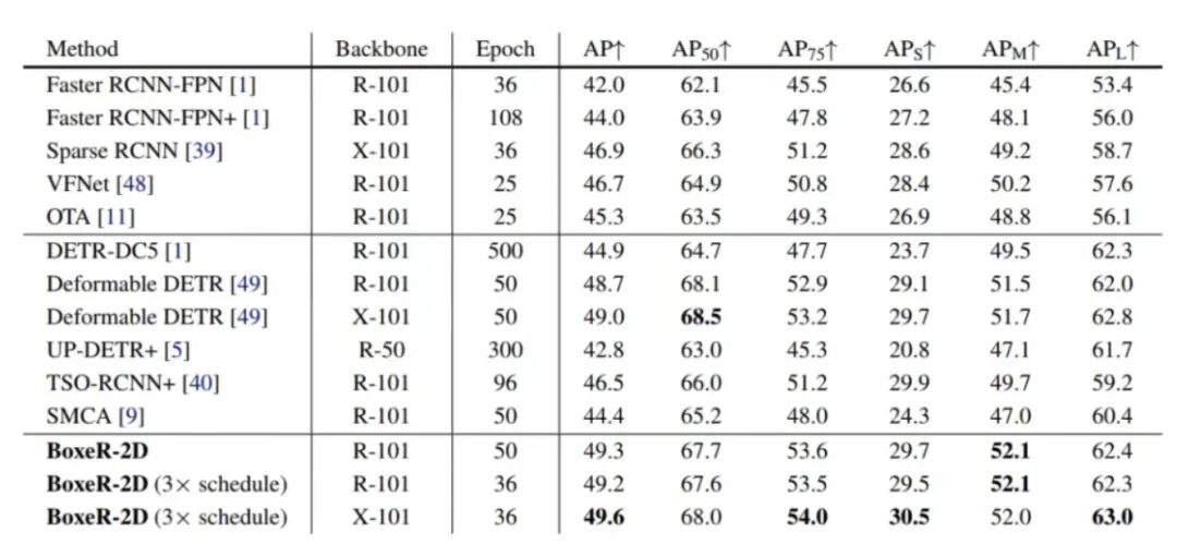 BoxeR-2D很灵活,因为可以轻松地将Instance-Attention插入其解码器,以预测目标位置及其Mask。表2b显示了BoxeR-2D从多任务训练(目标检测和实例分割)中获益。