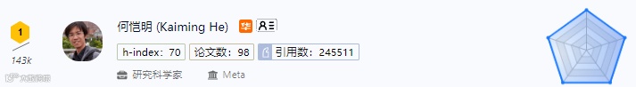 Ross B. Girshick是Meta的科学家,2017年与何恺明合著“Faster R-CNN ”,这项工作也是至今为止获得最高引用的一项。