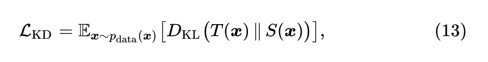 令 和 分别代表教师和学生网络,则作者使用交叉熵损失来使得学生网络的输出符合教师网络的输出,具体的损失函数为: