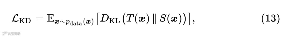 指KL 散度损失函数,描述的是教师网络和学生网络的输出的差异,