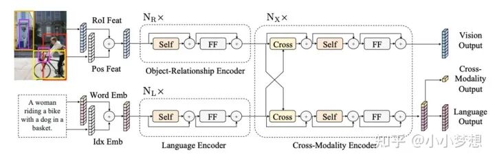 (1)特征提取:文本采用的是bert的tokenizer,图片是基于一个pretrain的object-detection网络生成图像rpn及其视觉特征。具体的是使用bounding boxes的左上角和右下角的坐标以及图像区域的覆盖占比形成的一个5-dim的vec,然后用一个MLP将之映射成与视觉特征一样的维数,然后做sum。
