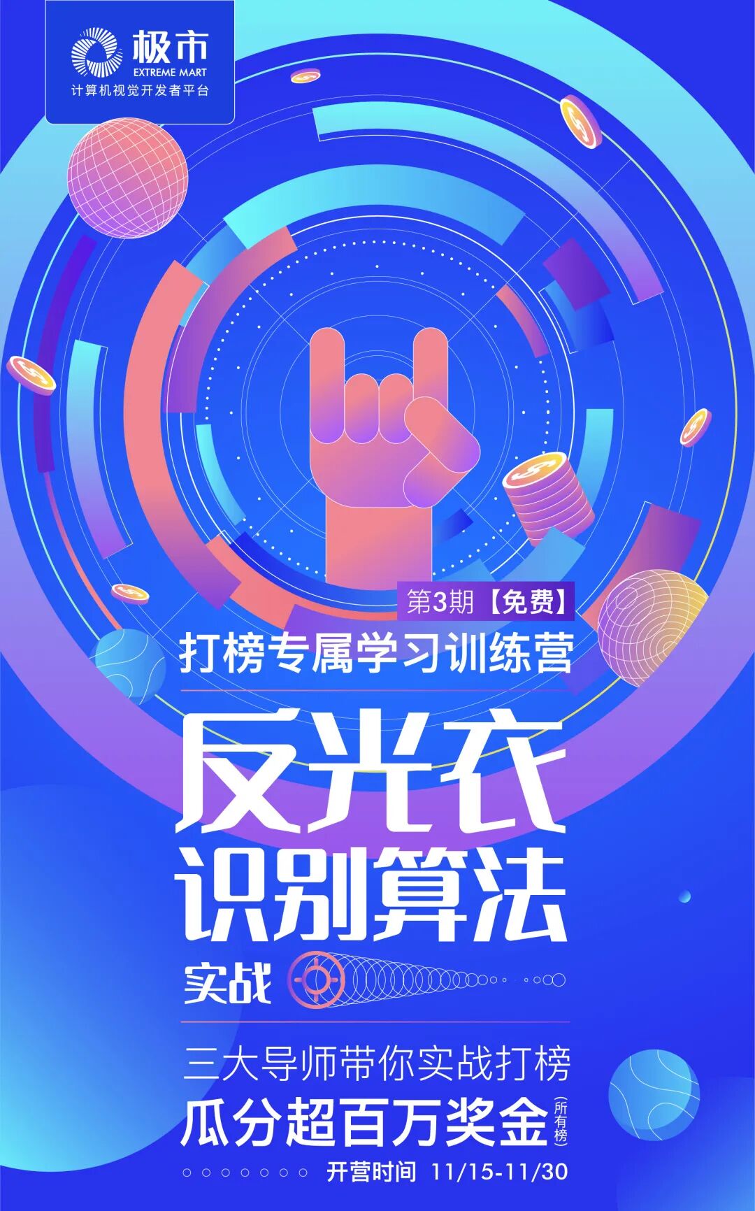 极市打榜是面向计算机视觉开发者的算法竞技,参与者人人都可以通过提高算法分数获得早鸟奖励(0.7/0.8/0.9)+分分超越奖励(每超越第一名0.01分),排行榜前三名的胜利者将有机会获得该算法的极市复购订单,获得持续的订单收益。打榜算法每周上新!