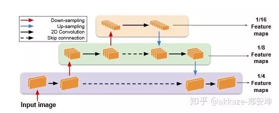 前面几层下采样频率高一点,中间层下采样频率降低,并使用不下采样的方法提高深度。