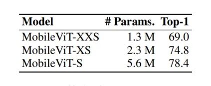 受到轻量级CNN的启发。作者用3种不同的网络规模(S:小,XS:特别小,XXS:特别小)训练MobileViT模型,这3种网络规模通常用于移动视觉任务(图3c)。