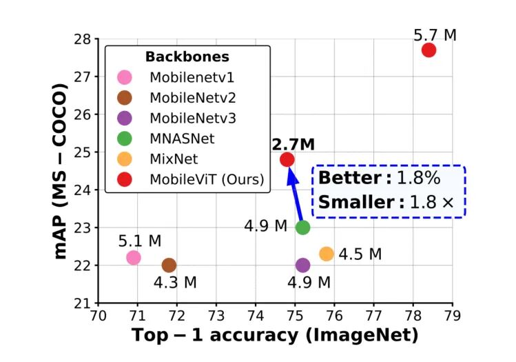 更好的性能:在相同参数情况下,与现有的轻量级CNN相比,MobileViT模型在不同的移动视觉任务中实现了更好的性能; -
