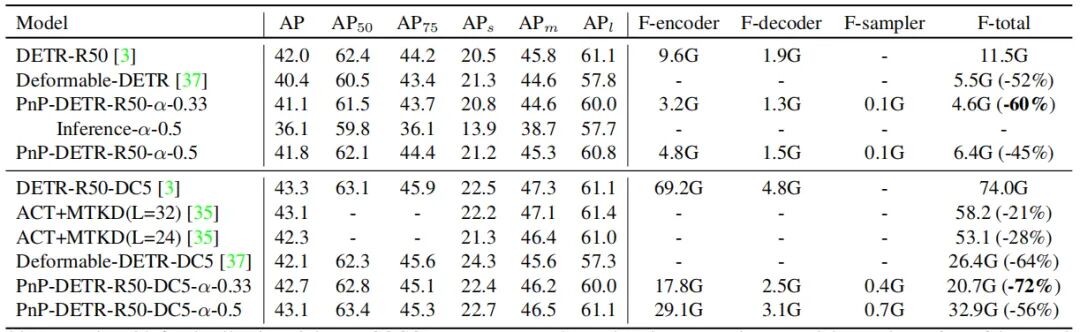 作者在COCO基准数据集上进行了广泛的实验,结果表明PnP-DETR有效地降低了成本,实现了动态计算和性能权衡。此外,作者还在全景分割和图像分类任务上验证了本文方法的泛化性。