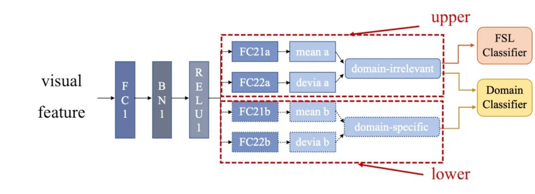 最后只用domain-irrelevant features来用作FSL分类器的输入。