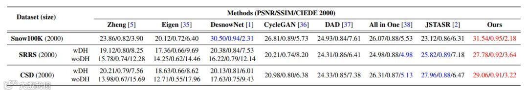 此外,针对snow streak的部分,论文当中也提出了一个新的大型数据集Comprehensive Snow Dataset (CSD),供这个领域的研究者使用。