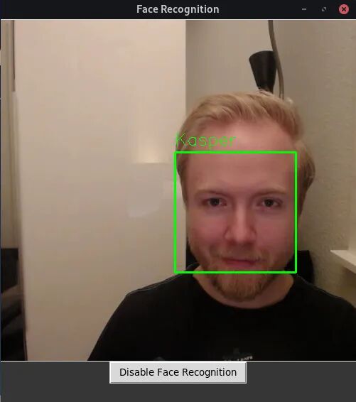 该应用程序包含一个GUI,其中有一个用于显示相机设备输出的面板。此外,还有一个用于激活/禁用人脸识别的按钮。