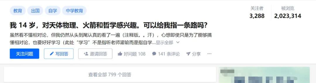在这之下有人冷嘲热讽,有人给出了鼓励和建议。从人们回答的时间来看,问题的发起应该是在 2017 年,14 岁的少年如今也到了上大学的年龄。不知他 or 她是否还能坚持自己的兴趣和理想?