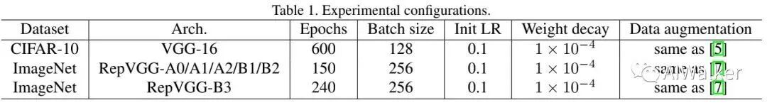 我们先在CIFAR10数据集上进行了快速验证,然后再到ImageNet上进行进一步论证。下表给出了不同实验的配置信息。