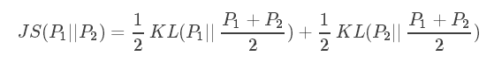 JS 散度 度量了两个概率分布的相似度,基于 KL 散度的变体,解决了 KL 散度非对称的问题。一般地,JS 散度是对称的,其取值是 0 到 1 之间。定义如下: