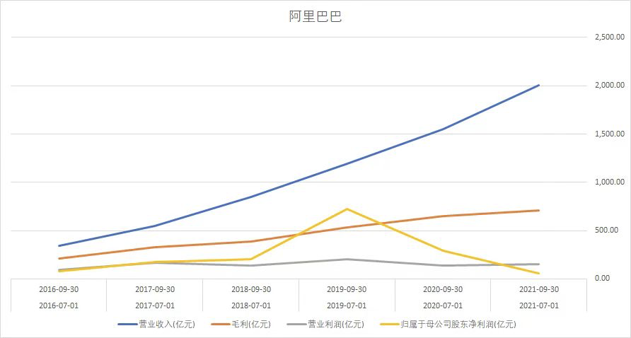 11月18日,阿里公布了第二季度营收2006.9亿元人民币,同比增长29%,未达到市场预估的2061.7亿人民币。如果再扣除合并高鑫零售带来的增长,公司季度的营收则会降为1804.38 亿元,同比增长16%。