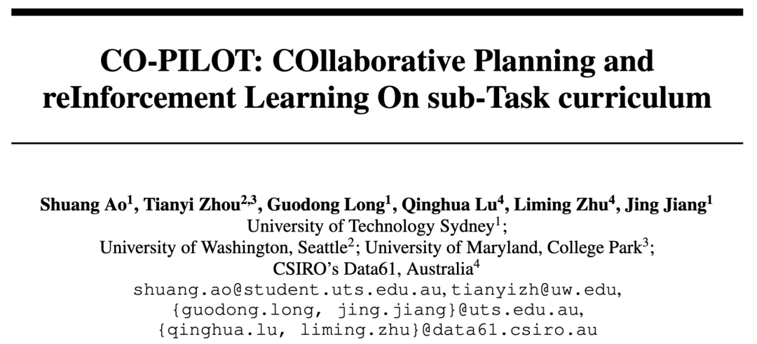 作者在文章中提出了一个新的框架CO-PILOT,其中规划器(Planner)和强化学习代理从头开始训练,并可以通过自动生成的易到难的子任务课程,相互促进和指导彼此的训练。