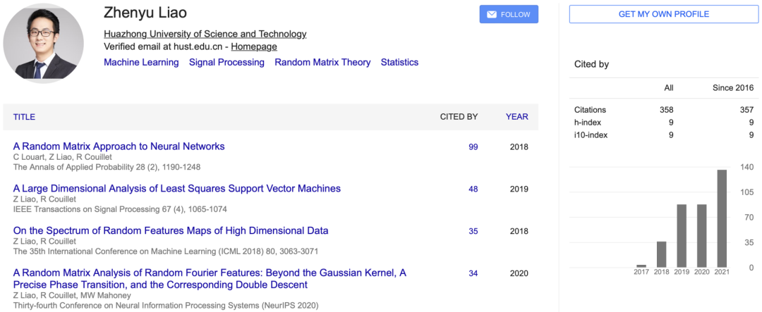 在此之前,Zhenyu Liao于2020年在加利福尼亚大学伯克利分校统计系做博士后研究。
