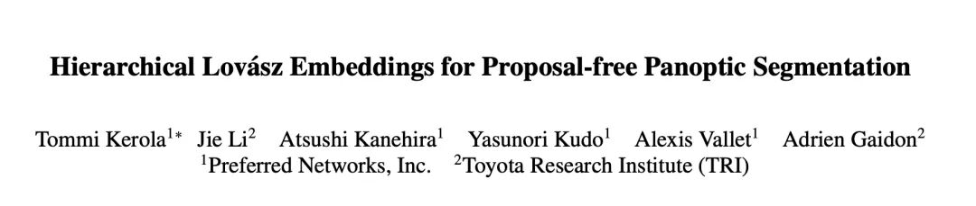 标题:用于无提案全景分割的分层 Lova ́sz 嵌入