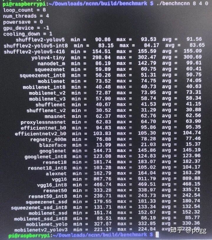 pi@raspberrypi:~/Downloads/ncnn/build/benchmark $ ./benchncnn 8 4 0