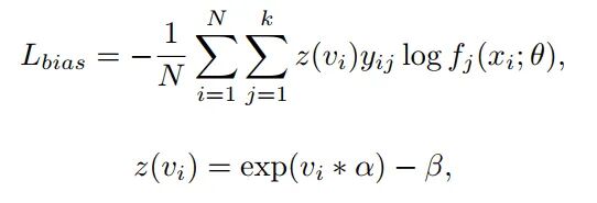 其中,作者认为神经网络的输出层是一个softmax。为了校准每个数据点对累积损失的贡献,作者建议添加一个非线性尺度函数,其目的是在低方差和高方差的数据点之间产生bias。bias loss定义为: