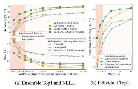 从上图可以看出,随着宽度w的增加,MixMo比DE(绿色曲线)的性能提升更加明显。