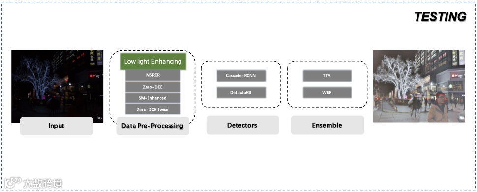 论文使用加权边界框融合(WBF)和测试时数据增强(TTA)方法将检测器的预测组合,并在模型组合过程中使用了Soft-NMS。